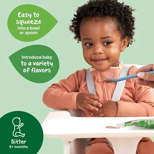 - One 12 ct pack of 3.5 oz pouches of Gerber 2nd Foods Baby Food, Banana, Blueberry, Blackberry Organic Oatmeal